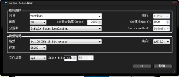 到这里已经基本设置OK了,如果你想录视频的话点击【广播】【录制视频】,第一次会弹出录制视频的品质设置,按照下图的设置,上传到优酷的视频就已经是超清的了。电脑硬件不是很好的,可以适当调低画质,和最大码率。