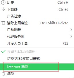 方法三、浏览器菜单“工具”——“Internet 选项”(我以360浏览器举例)