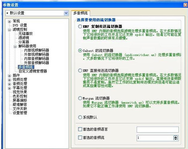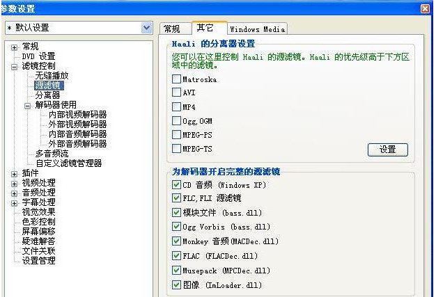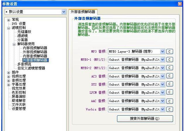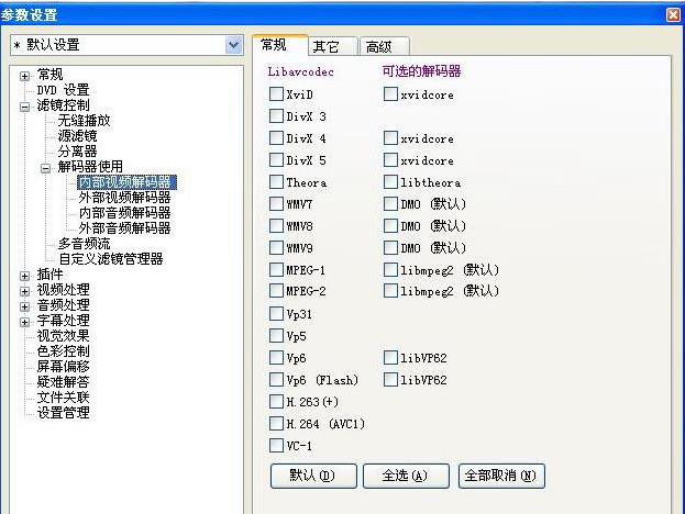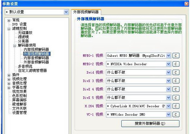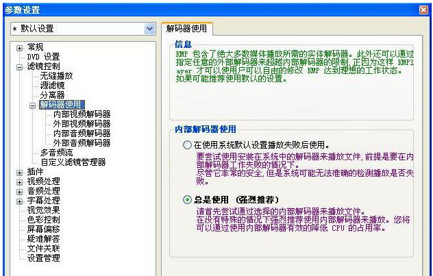 先看看DVD设置,然后看到解码器,建议使用内部解码器。