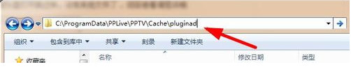 第二步:在地址栏输入地址:C:\ProgramData\PPLive\PPTV\Cache\pluginad (xp系统输入地址:C:\Documents and Settings\All Users\Application Data\PPLive\PPTV\cache\pluginad)点击回车