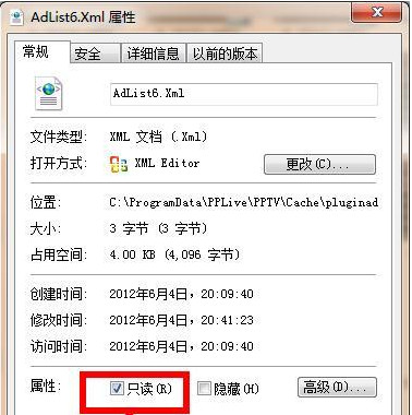 第八步:在属性中,将该文件设为只读。方法都是和上面的一样的。