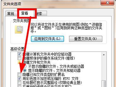 第十二步:在文件夹选项中,设置查看选项,将“隐藏已知文件的扩展名”取消勾选,这样我们就可以看到文件的扩展名