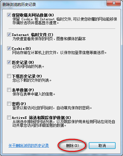 然后在删除历史浏览记录窗口中点击底部的“删除”按钮