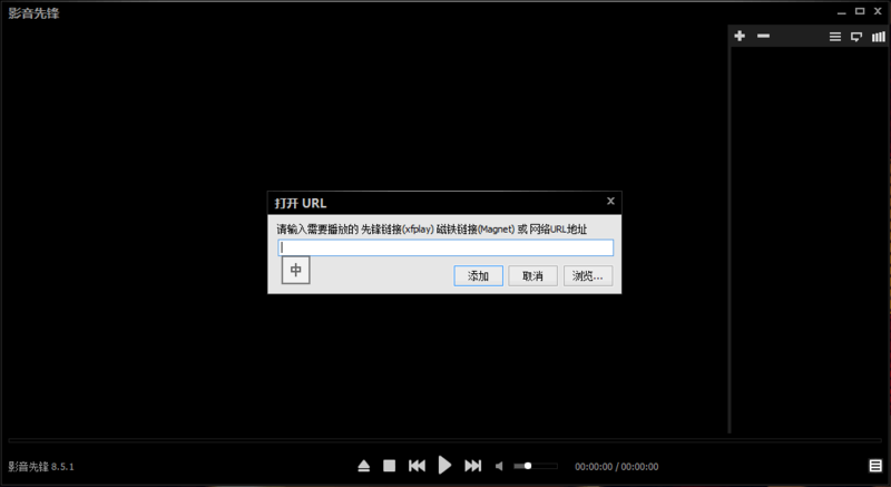 除了web端播放之外,还支持BT和磁力链接,磁力链接现在已经很普及了,都已经有专门的磁力搜索了,大家搜索下吧!右上角第三个按钮,可以选择打开磁力链接,就能弹出下面窗口: