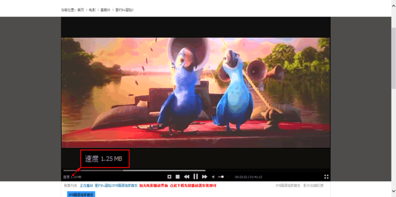 第三:随便找了一个里约大冒险2点开看了下,注意左下角,这里可以查看下载的速度哦!看看这个速度是不是觉得很不错呢!