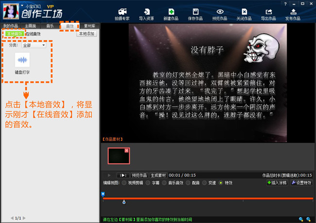 第3步:如下图3,在【在线音效】添加的音效完成自动下载后,也会显示在【本地音效】上,此音效在无网络的情况下也可以继续使用,音效的添加和编辑步骤同上面的第2步。