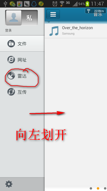 进入软件的主页面,向右划开即可进入功能列表,即可打开雷达功能