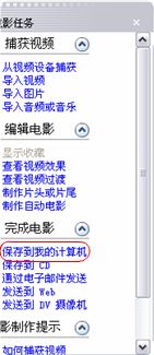 经过上面的辛劳工作,是该导出影片的时候了!在电影任务里选择”保存到我的计算机”,然后按照向导,