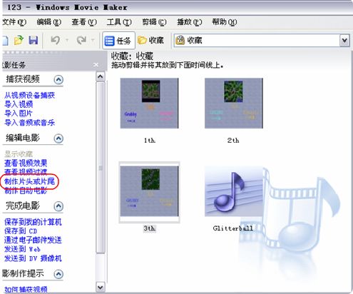 步骤一:在”电影任务”中选择”制作片头或片尾”,如图: