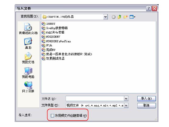 把”为视频文件创建剪辑”复选框去掉,不然导入的视频就可能被切成一段段的.