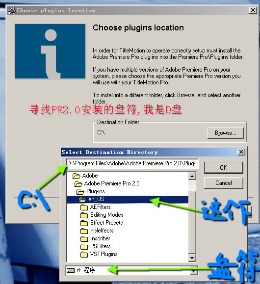 一定要将安装路径改为Premiere Pro 2.0的安装目录x:\Adobe\Adobe Premiere Pro 2.0 \Plug-ins\en_US