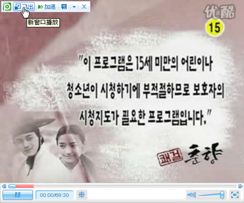 按钮,可以直接把视频从网页中独立出来,成为一个单独的窗口,这样您就可以边看视频,边浏览网页了: (但是目前不支持在同一页面下“飞出”独立视频后,再对该页面进行拖动、刷新、滚动鼠标滚轮等页面浏览操作,因为这样可能导致独立视频窗口出现画面花屏等异常现象)