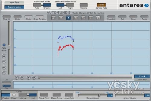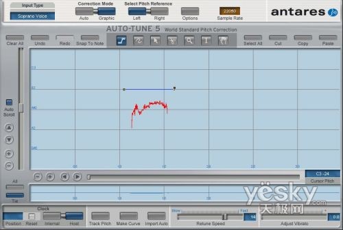 如果是演唱过程中偶然的某个音音高不准,用变速器效果就比较不好了,因此我们采用著名的Auto-Tune来调整音高。