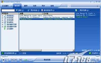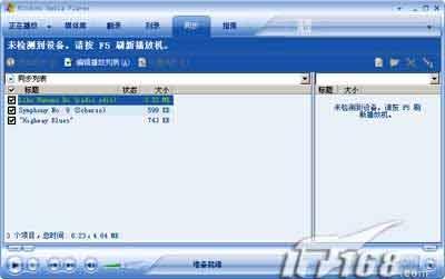 首先在播放列表中选择要同步的音乐、视频文件,单击右键,选择“添加到→同步列表”,接下来切换到“同步”窗口,选择要同步的文件后点击“开始同步”就行了。由于我没有相关的硬件产品,对这个功能只能望洋兴叹了。