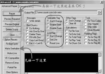 此时大家只需要再按一下Make Seekable按钮和Repair按钮,一会儿你就可以得到一个可以拖放的ASF或WMV文件了。不难看出在这个窗口里面还有很多ASF文件的状态标志值可以修改,如果你的ASF还有其他一些问题的话,也可以一并选上然后修复 如何,修复,破损,的,流,媒体文件,