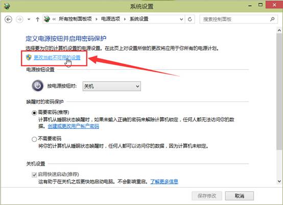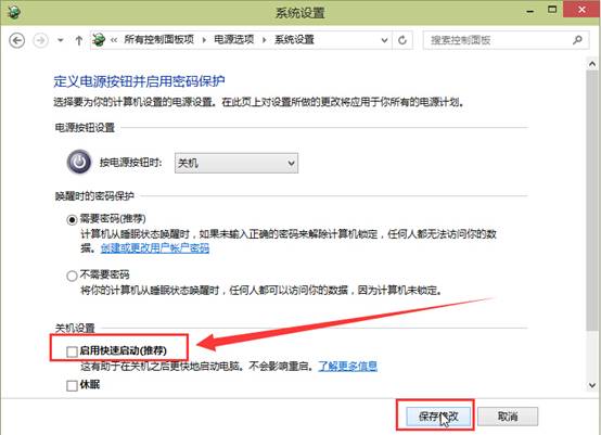 4.这里直接取消勾选“启用快速启动(推荐)”点击“保存修改”完成设置。如下图所示