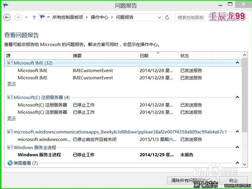 6、这时就会打开一个问题报告的窗口,在这里就显示了所有问题的报告,有些问题已经发送报告给Microsoft,解决方案可用时,会显示的我们计算机的操作中心。