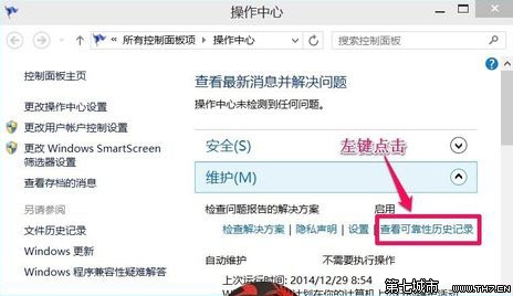 3、在维护标签下,我们再左键点击:查看可靠性历史记录;