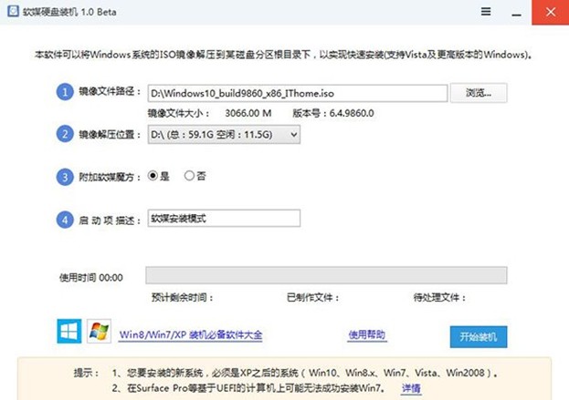 ③“附加软媒魔方”:建议选择“是”,可以方便的在系统安装完成后,使用“软件管家”方便的安装各种软件,一键屏蔽插件。也可以通过设置大师、优化大师以及清理大师,方便的调整和维护系统。当然,也可以选择“否”,或是在安装完成后完全卸载;