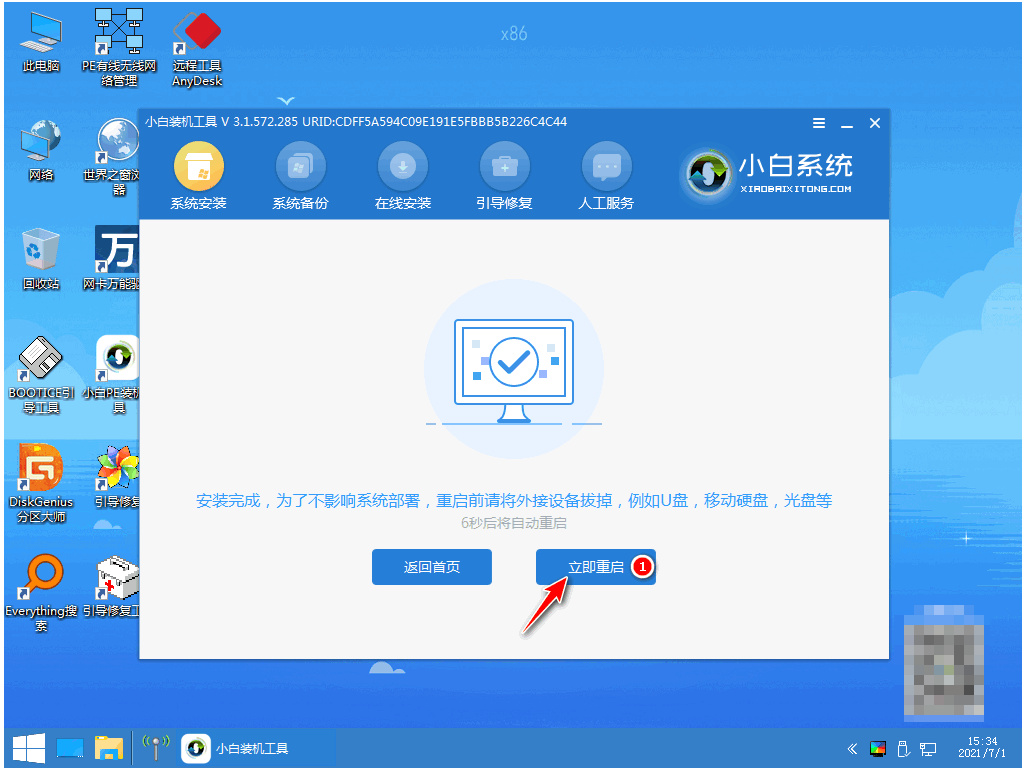 3、开始安装之前会点电脑部署环境,部署环境完成后我们直接重启电脑。