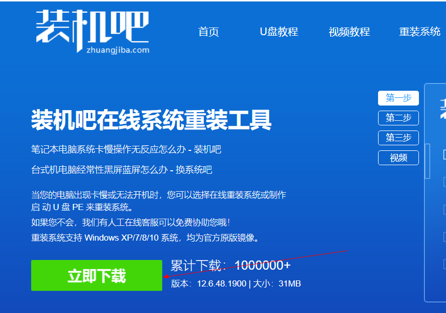 1、在电脑上,到装机吧官网下载装机吧一键重装系统软件。