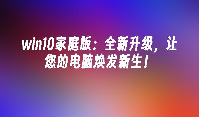 win10家庭版:全新升级,让您的电脑焕发新生!