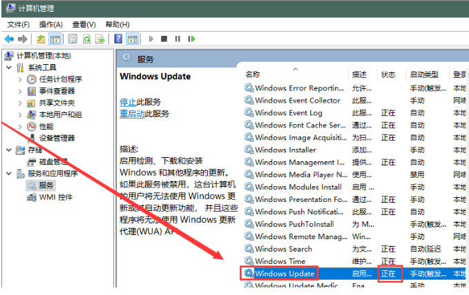 提示:更新前必须要确保Windows Update服务是开启状态,如下: