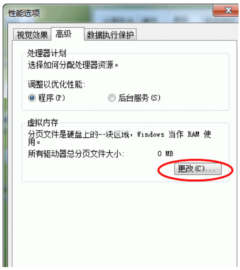 方法一:进入系统属性中的高级性能更改虚拟内存