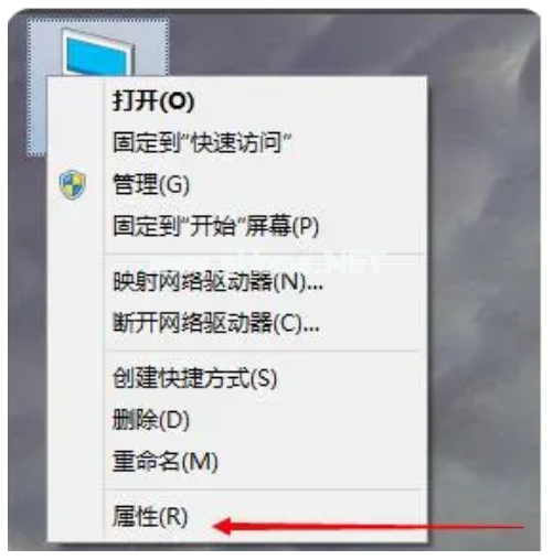1、鼠标右键选中“此PC”图标上的“属性”。