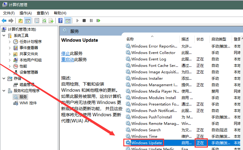 2.核实Windows Update服务的状态是否是正在运行的,如果不是,鼠标点击进行启动。(如果启动是灰色,则鼠标右键点击打开属性,将启动类型改成手动,点击应用后,再点击启动)。