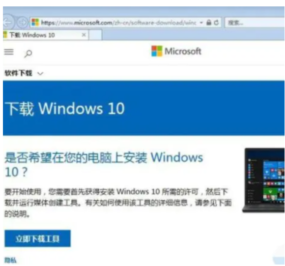 1、首先我们打开微软官网进入“下载Windows10”页面,点击“立即下载工具”。
