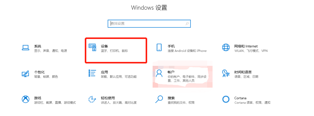 6. 完成更新后,返回到“设置”窗口,然后点击“设备”。