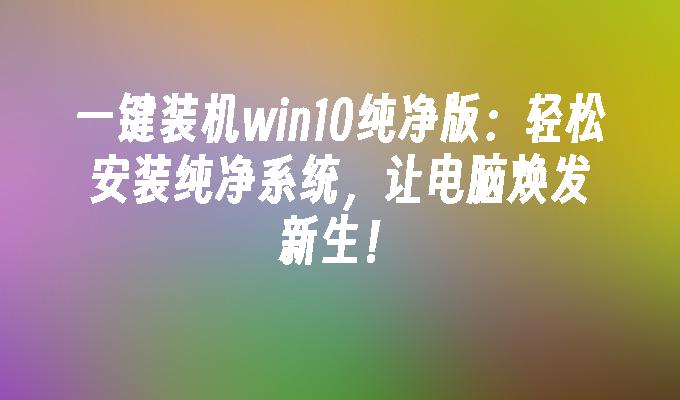 一键装机win10纯净版:轻松安装纯净系统,让电脑焕发新生!