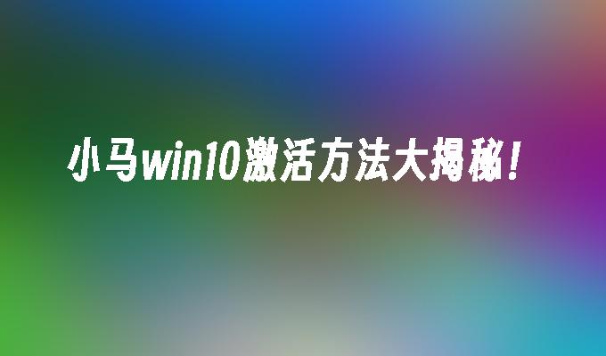 小马win10激活方法大揭秘!
