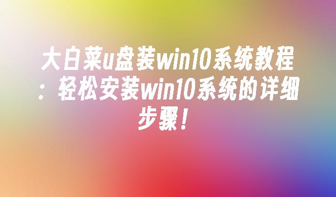 简介:本文将介绍使用大白菜U盘安装Win10系统的详细步骤,帮助读者轻松完成系统安装。