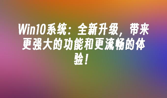 Win10系统:全新升级,带来更强大的功能和更流畅的体验!