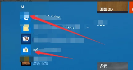 2.在左侧的列表找我们就可以找到应用商店,M开头的应用程序。