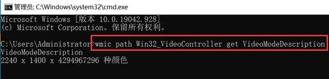 1.同时按下【win+R】,在窗口中输入【cmd】后按下【回车键】;在命令提示符中,输入【wmic path Win32_VideoController get VideoModeDescription】并按下回车键,即
