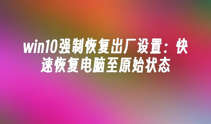 win10强制恢复出厂设置:快速恢复电脑至原始状态