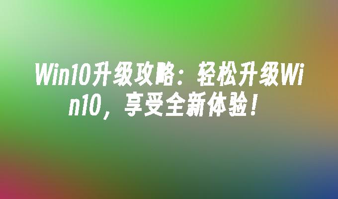 Win10升级攻略:轻松升级Win10,享受全新体验!