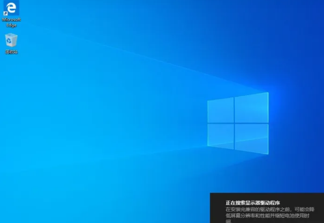 12、看到右下角出现「正在搜索显示器驱动」,说明安装完新系统后驱动要更新了,建议使用驱动精灵来更新驱动。