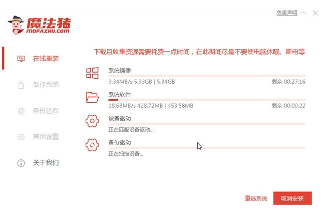 3、等待系统重装资源下载。
