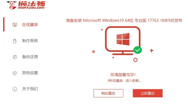 4、下载完系统镜像后,环境部署完毕后,等待电脑重启。