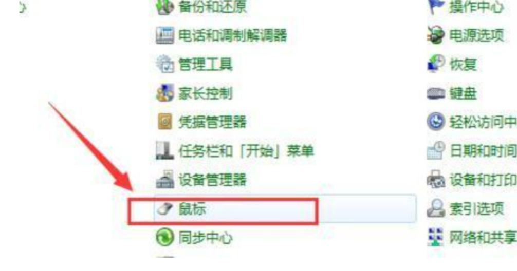 2、点击要设置的【鼠标】选项,弹出鼠标属性的设置界面。