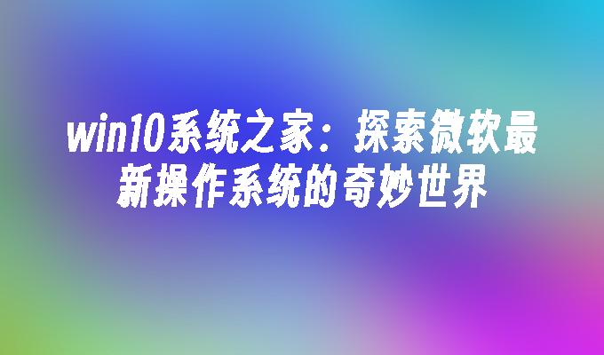 win10系统之家:探索微软最新操作系统的奇妙世界