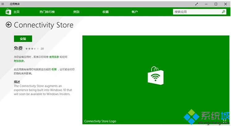 3月25日消息,在Win10预览版10041中,新版应用商店已经在中国区正式营业。不过,微软的“开店计划”似乎还没完,最近在Win10旧版应用商店(美国区)中,出现了一款名为Connectivity