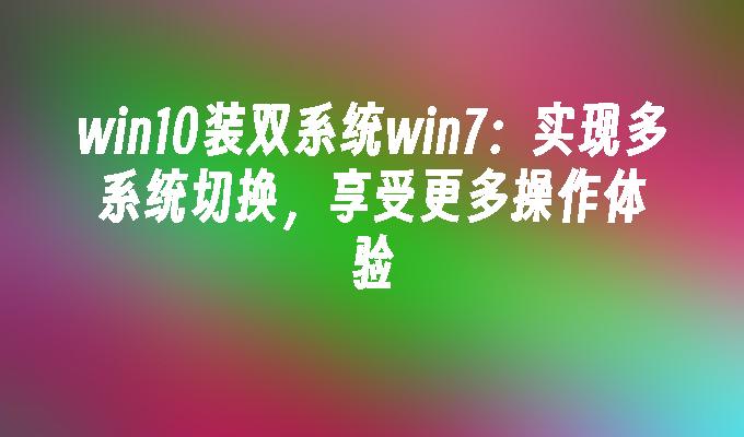 2023-09-13 20:08:02 win10装双系统win7 win10双系统安装win7 win10安装双系统win7win10系统如何降级安装win7