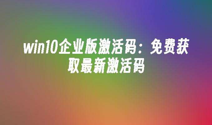 win10企业版激活码:免费获取最新激活码
