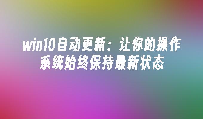 Win10自动更新:了解Win10自动更新的最新信息和设置方法。优化您的系统,确保您始终享受到最新的功能和安全性。立即了解如何管理和调整自动更新设置,以满足您的个性化需求。