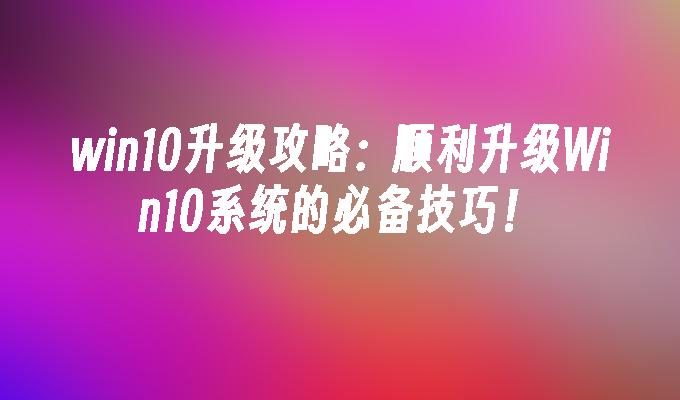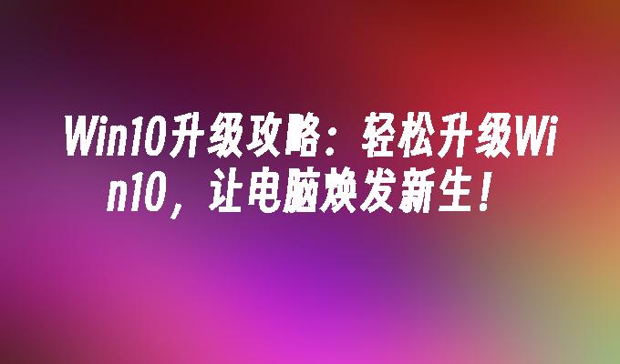 Win10升级:了解最新的操作系统升级方法和技巧。提供详细的升级步骤和注意事项,让您轻松升级至最新版本。享受更快、更安全、更智能的Win10系统体验。立即升级,尽享全新功能和优化性能。